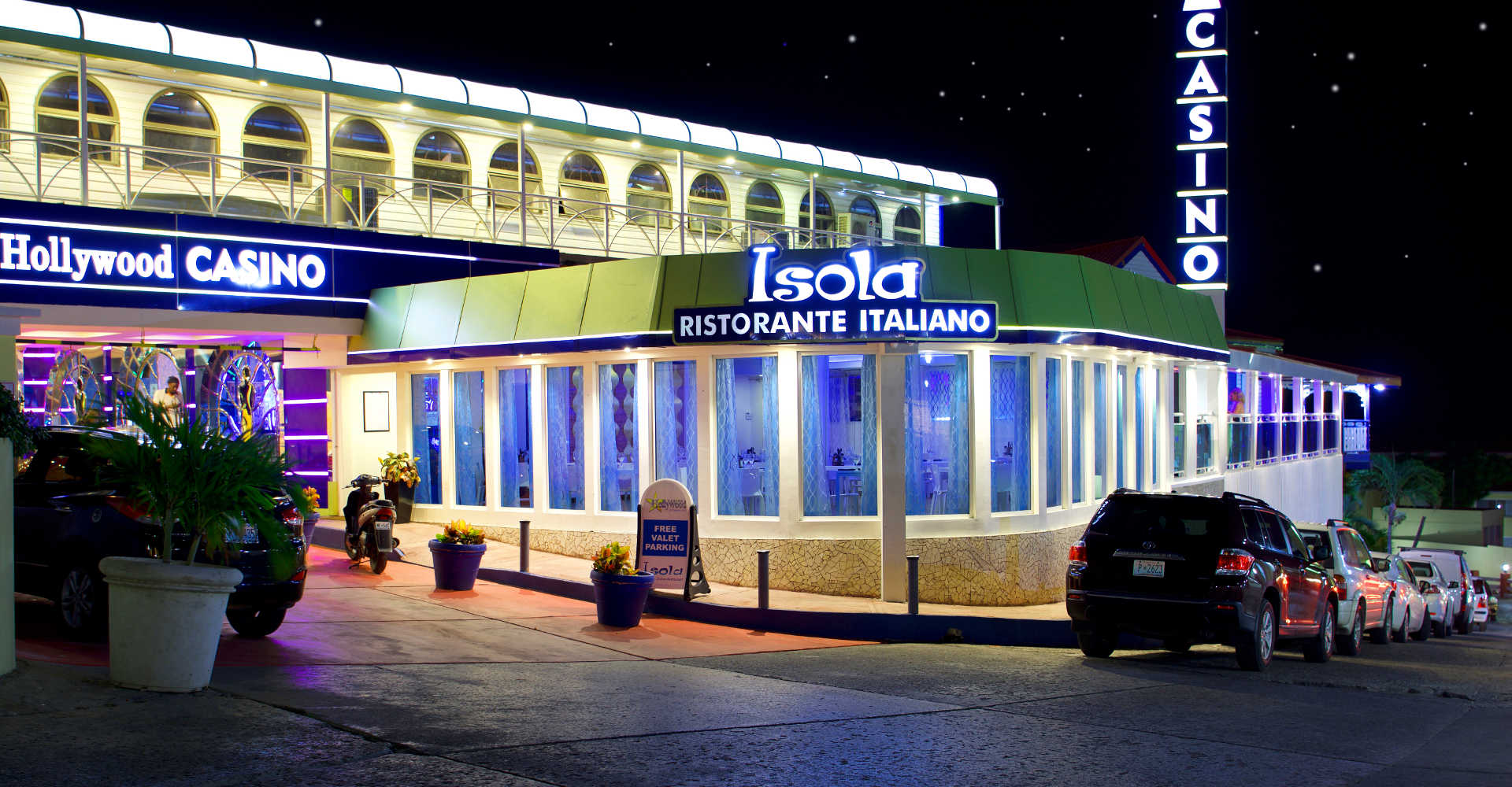 The casino is adjacent to the highly acclaimed Isola Ristorante for authentic Italian food and only steps away from other nightlife options.